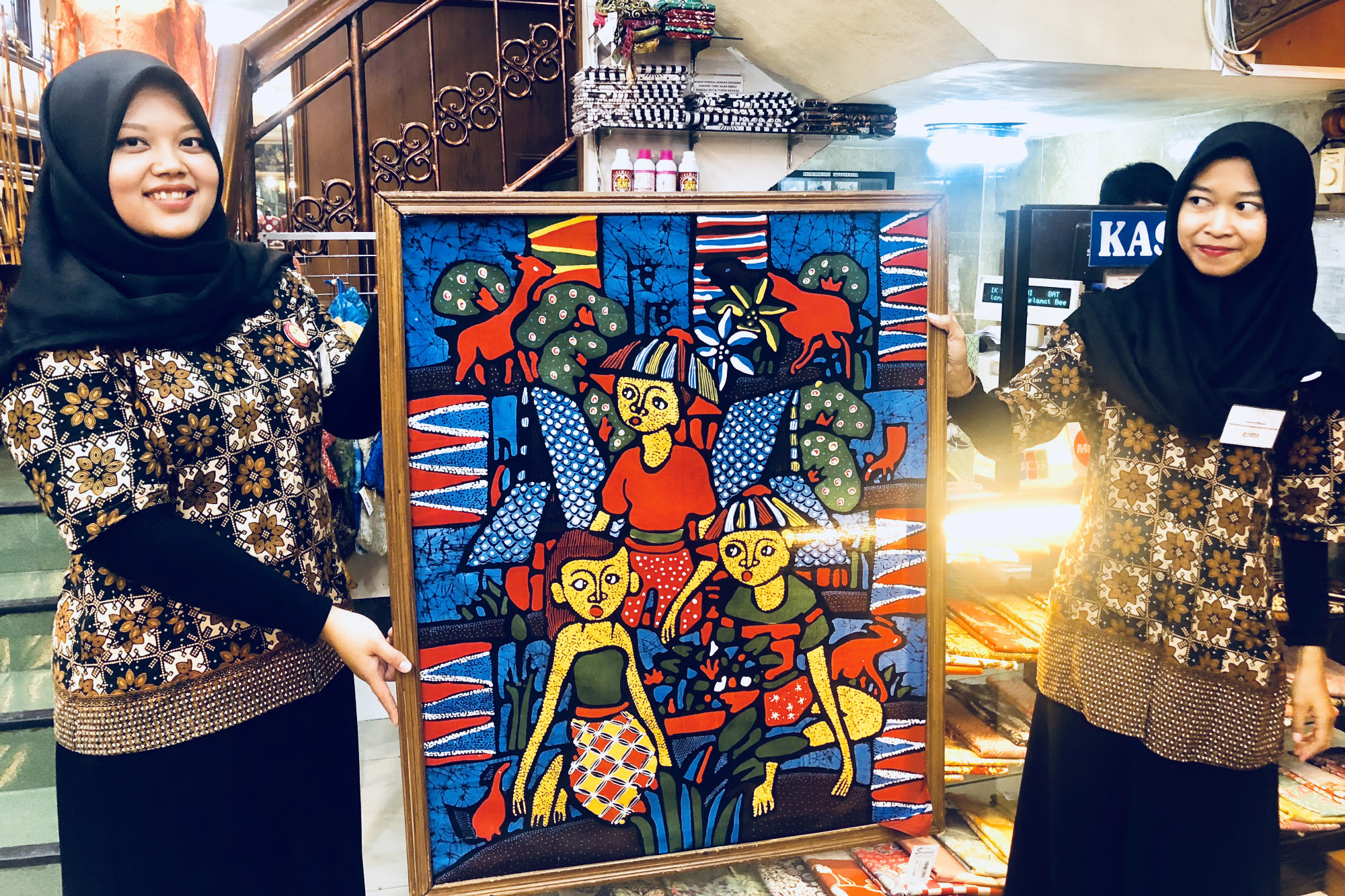 Ve městě Yogyakarta na jihu střední Jávy v Indonésii se zachovalo staré řemeslo batikování, kdy se různě nanáší barvy na látku a postupným vykrytím vznikají zajímavé obrazce. Určitě znáte batikované trička, která jsme všichni dělali ve škole nebo v kroužcích. Tak toto je něco podobného, jen je to daleko více složitější a výsledek stojí opravdu za to.